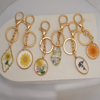 Llavero con diseño creativo de girasol y flores secas reales, colgante prensado de resina para llaves de coche, bolso con abalorio