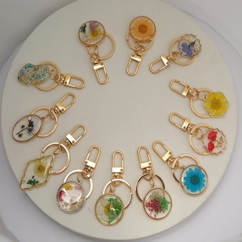 Llavero con colgante de flor seca auténtica, bolsa de girasol eterna de resina, accesorios para llaves de coche, llavero con broche